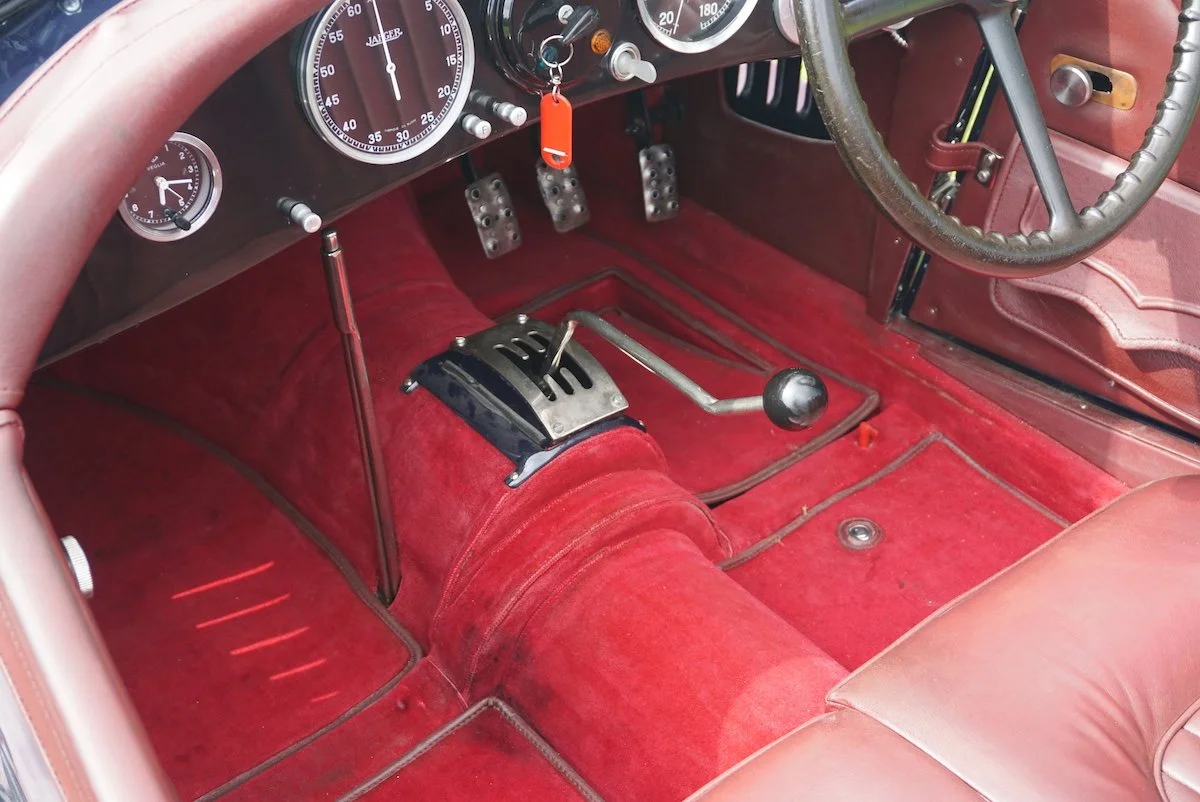 La voiture est dotée d'une carrosserie en aluminium bleu foncé avec des ailes bordeaux et est propulsée par un six cylindres en ligne Alfa Romeo de 2,6 litres à double arbre à cames en tête, alimenté par deux carburateurs. Les autres caractéristiques comprennent un châssis en échelle avec des essieux solides à lames à chaque extrémité, une boîte de vitesses manuelle à cinq rapports, des freins à tambour à ailettes hydrauliques assistés, des roues en fil de fer de 18 pouces et une sellerie en cuir rouge pour deux personnes. L'entretien effectué en mai 2022 comprenait le remplacement de la pompe à carburant et de la batterie, ainsi que le réglage du carburateur et la réparation d'une fuite du radiateur.