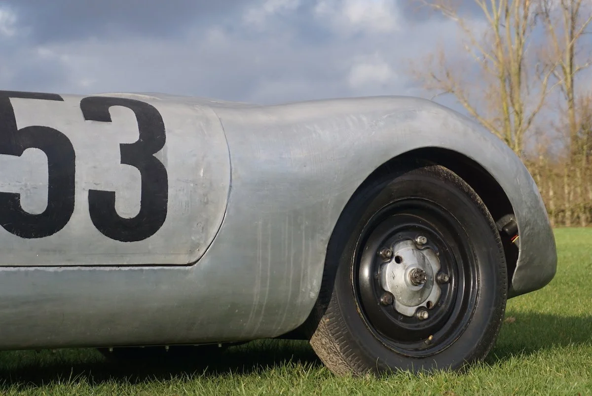 A real headturner! It is build on a tubular steel chassis especially made for this car and than wrapped in this magnificant aluminum body. The front end is from a VW aswell as the runing gear (engine and gearbox). This car is extra light and build as basic as possibly can to give it this extra cool racing look and feel. The red painted front nose aswell as the hand painted numbers add's the necessary look. No doubt you will identify/recognice the model and looks to one of the most iconic cars that raced back in the 50's. The interior is wonderfully looking with the 2new (WWII) style aircraft bucket's and a bare naked dashboard, only presenting a speed dial gauge, a rev counter and a few switches. A nardi style wooden steering wheels finishes it all.