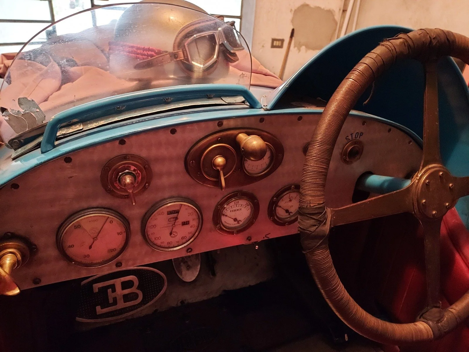 When L. Clark bought the car in 1933, it had a long and narrow 4-seater body. Clark built a new body, moving the dash and bulkhead right back and raced the car.