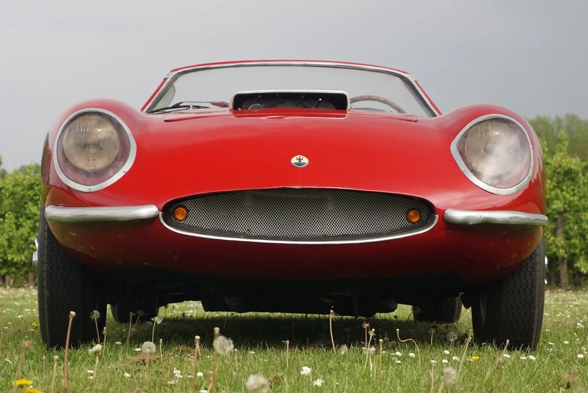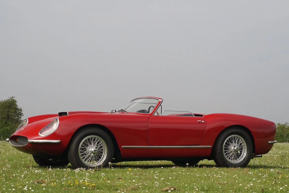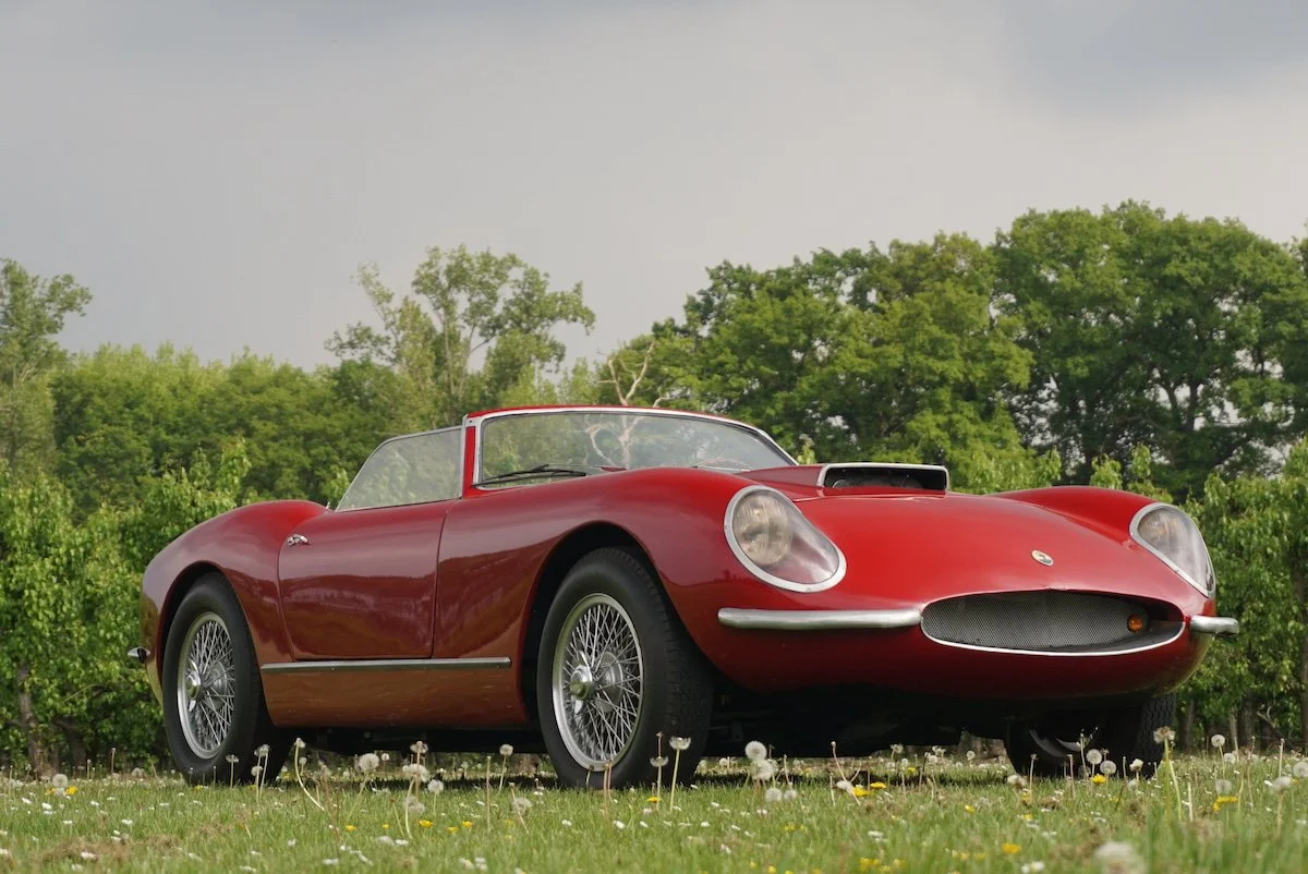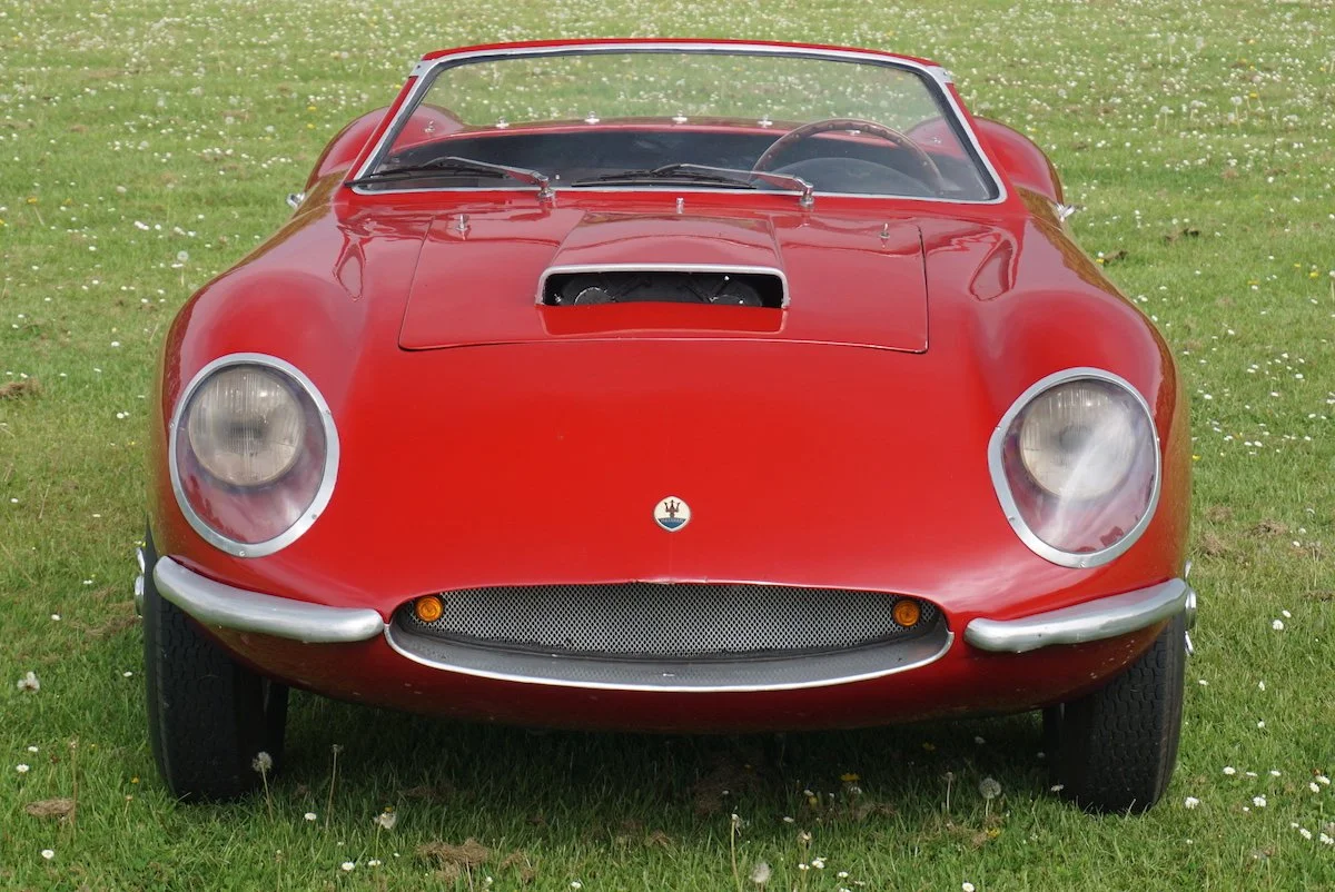 This 1962 Maserati 3500 GT has been fitted with aluminum bodywork by Italian coachbuilder Autotecnica del Lario in the 1970s and spent time in a private collection. Additional features include front disc brakes, 16” wire wheels, dual exhaust, a black soft top, and black and brown interior upholstery.