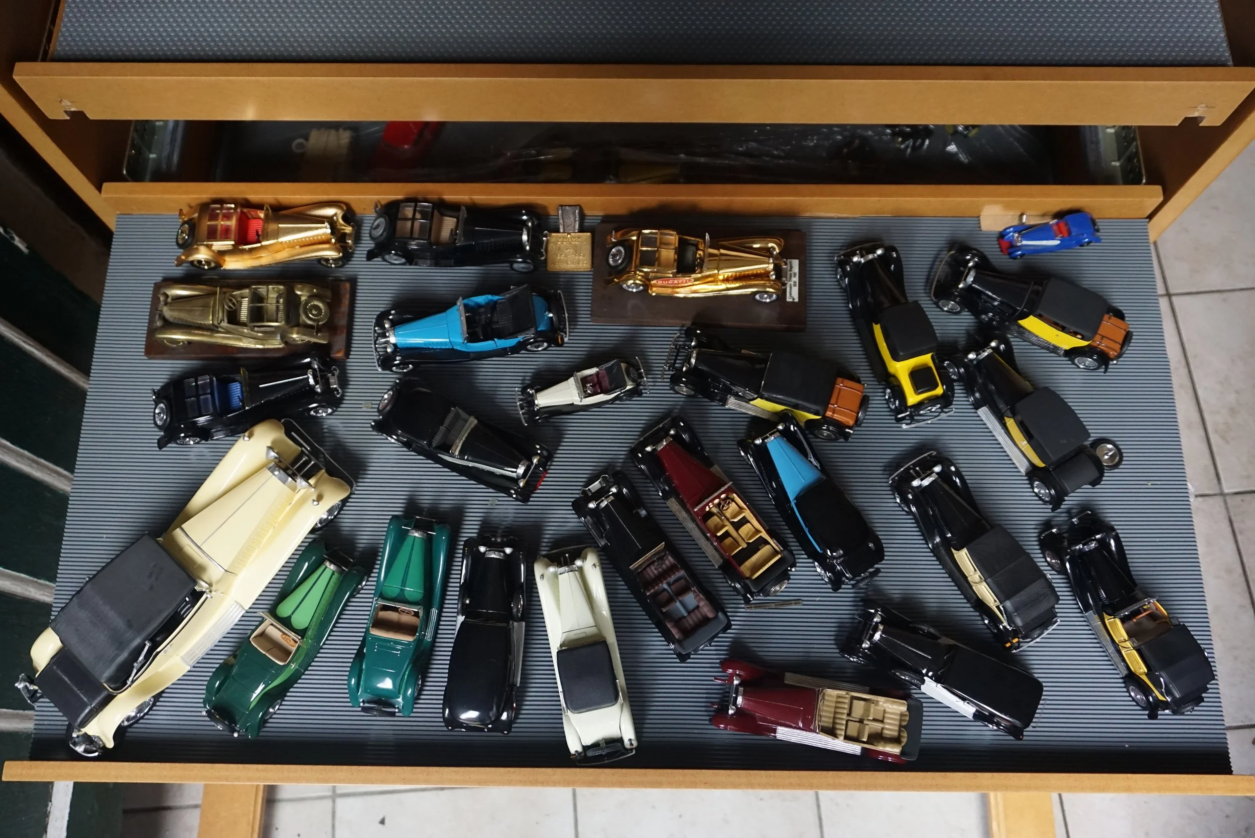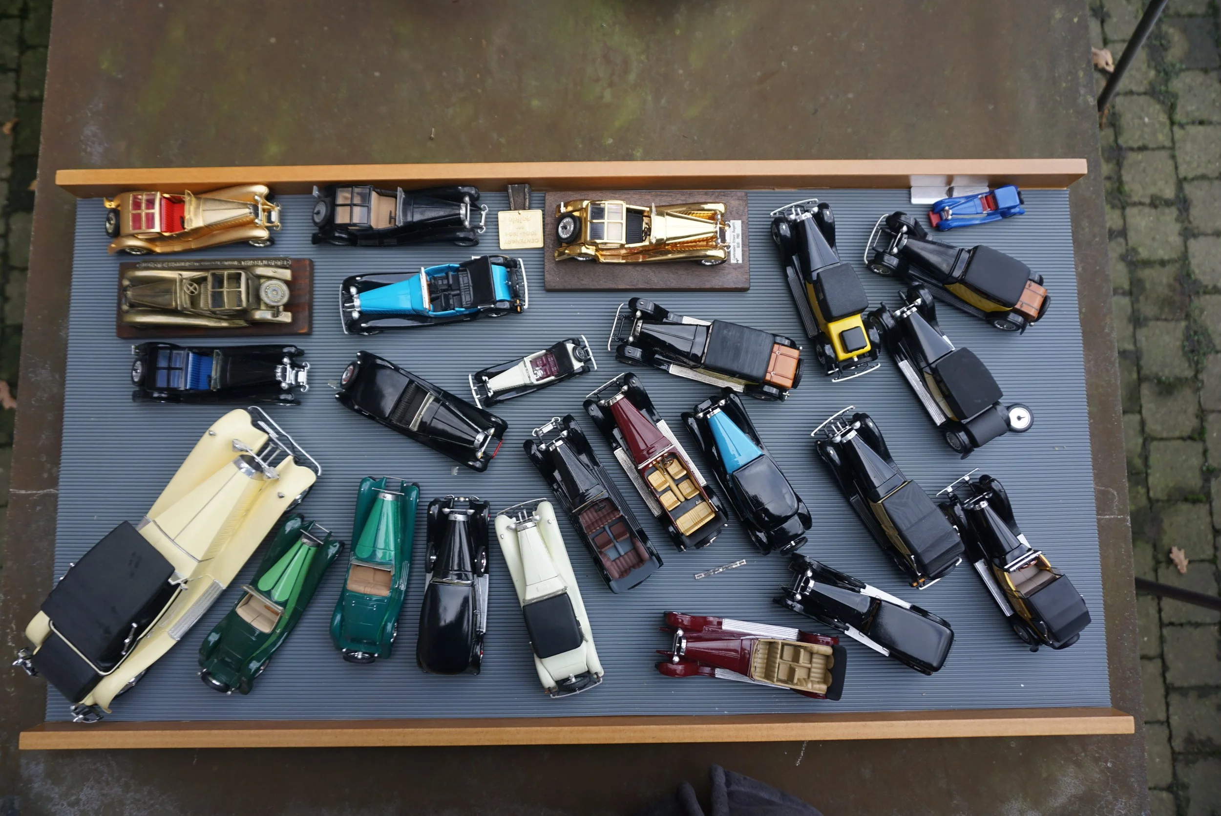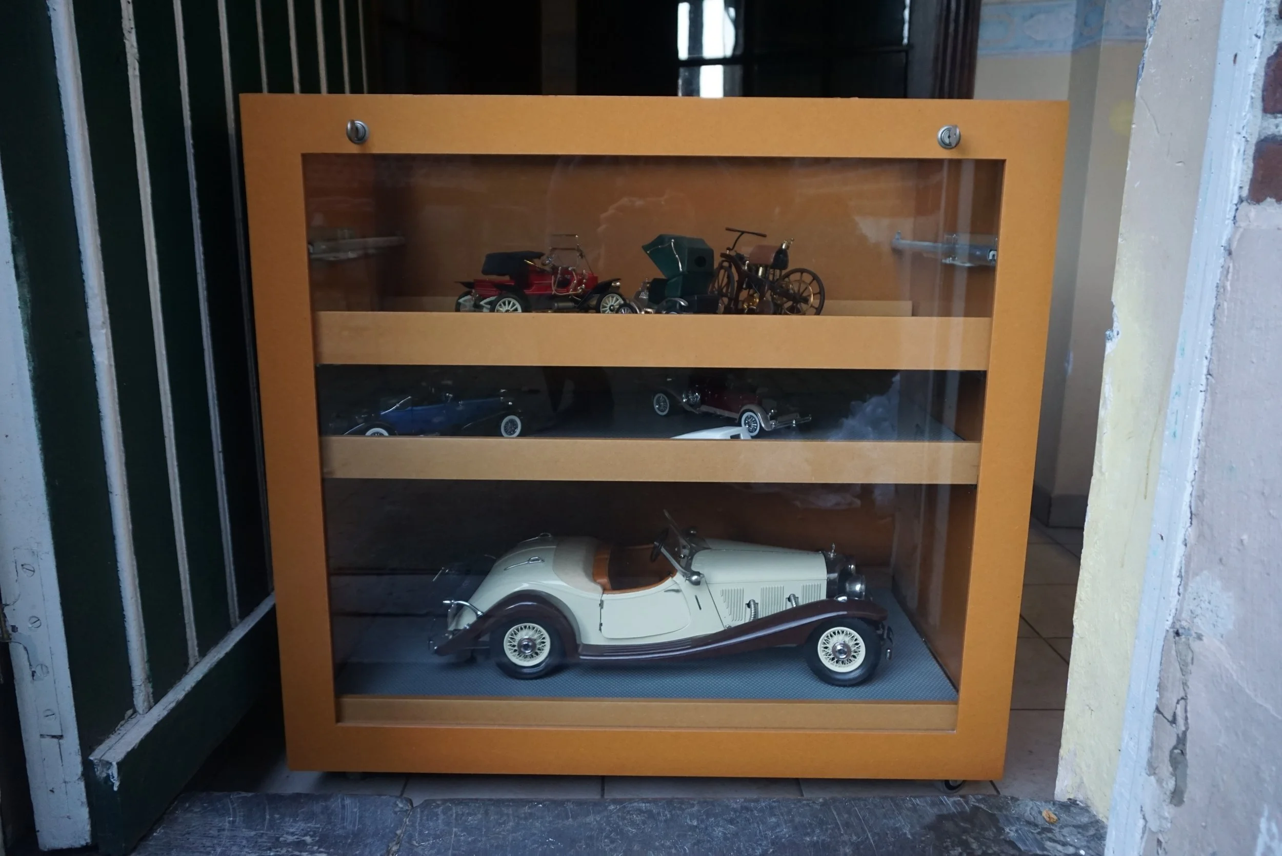 An exclusive collection of 9 display cases with a full collection of miniature cars. The collection holds several different models but mainly is a collection of Bugatti, Porsche, Mercedes,… The collection also holds some very rare and unique pieces.