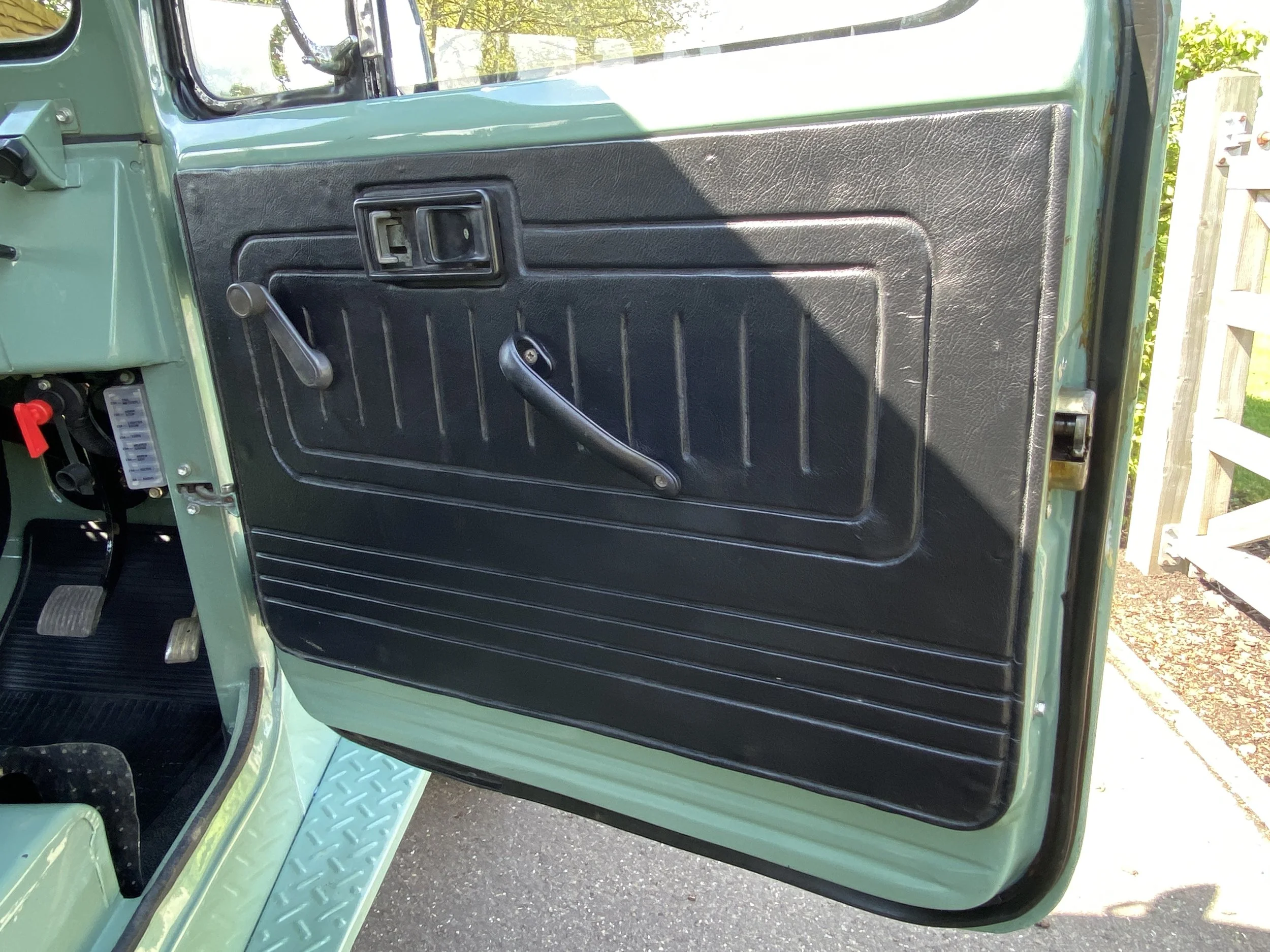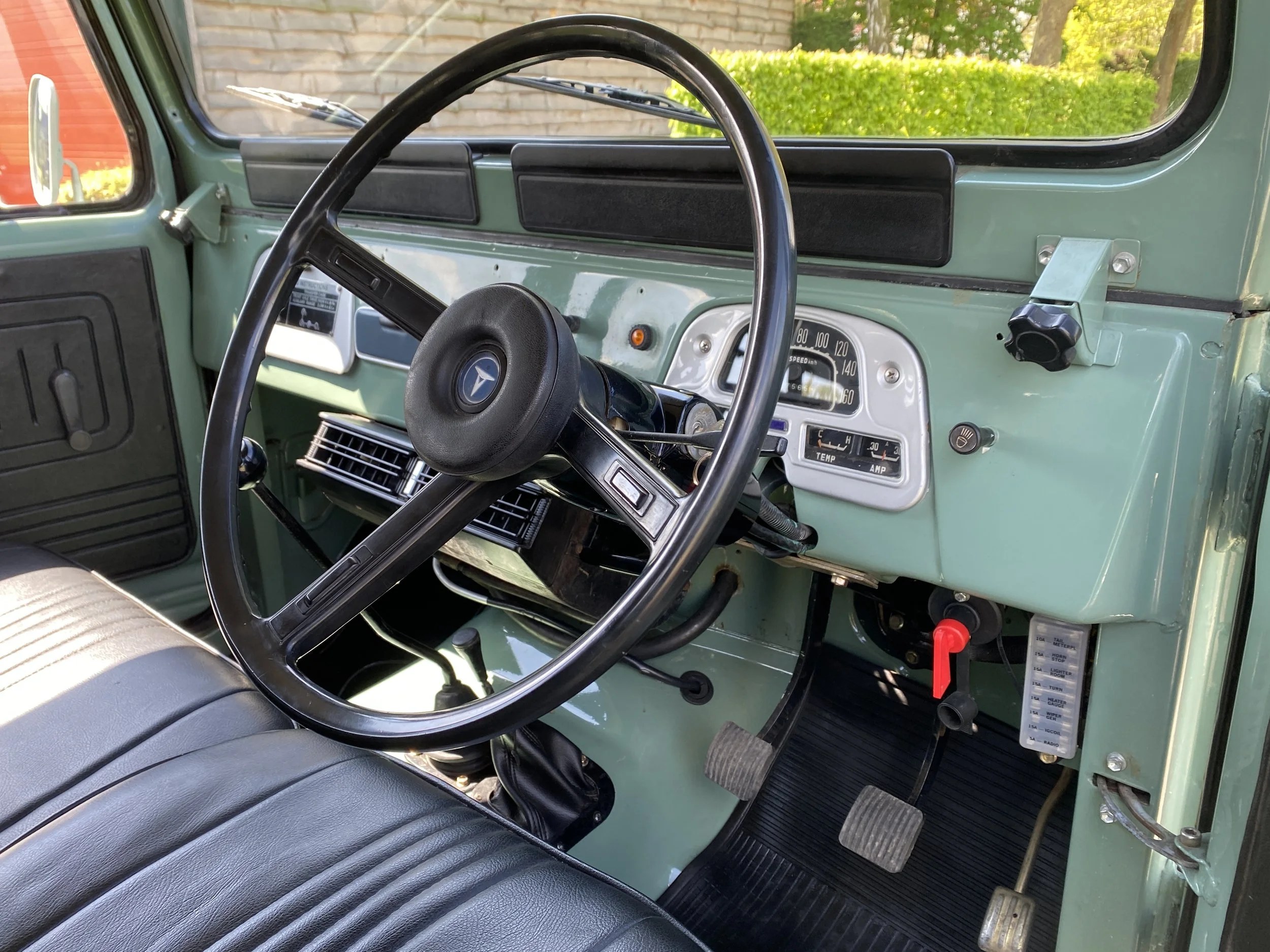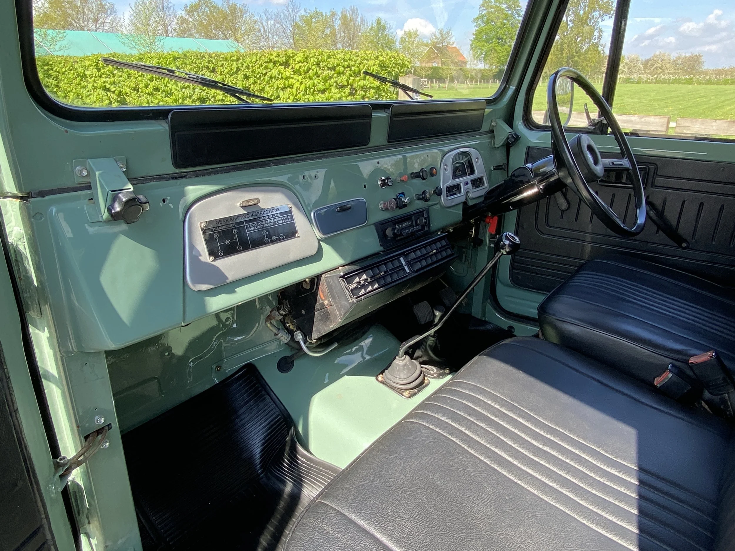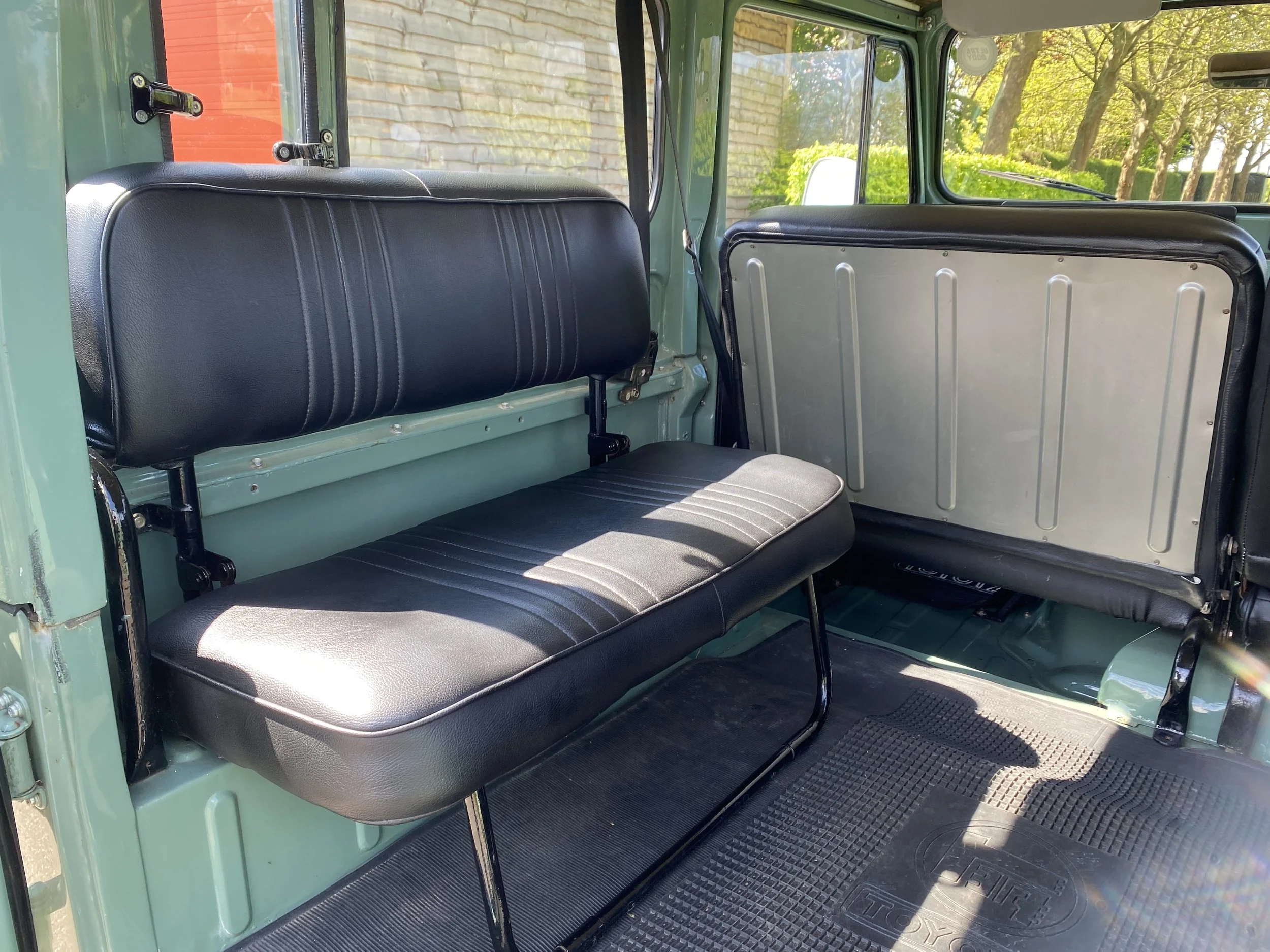 On this set of white wheels, you will find some brand new off-road tyres. On the inside of the FJ you will find place for 6 passengers and the driver. This interior was kept as original as possible and futures some black vinyl seats. All in very good condition with only some minor traces of use.